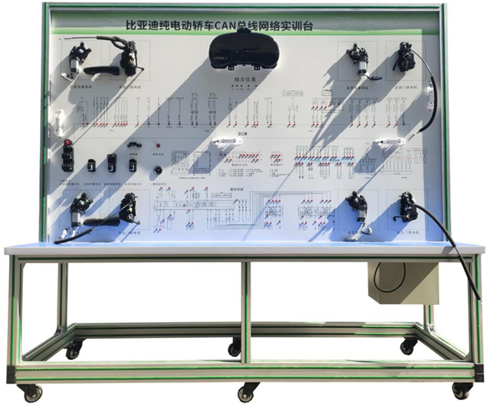 新能源比亞迪車載網絡實訓臺采用比亞迪e5 電動汽車CAN-BUS系統等真實器件制作的實驗實訓臺架,可電動汽車CAN-BUS系統相關的實驗實訓內容。適合于各類院校對純電動車CAN總線網絡系統理論和維修實訓的拆裝與維護、結構與原理認知、系統操作、功能動態演示、故障檢測與診斷教學需要。