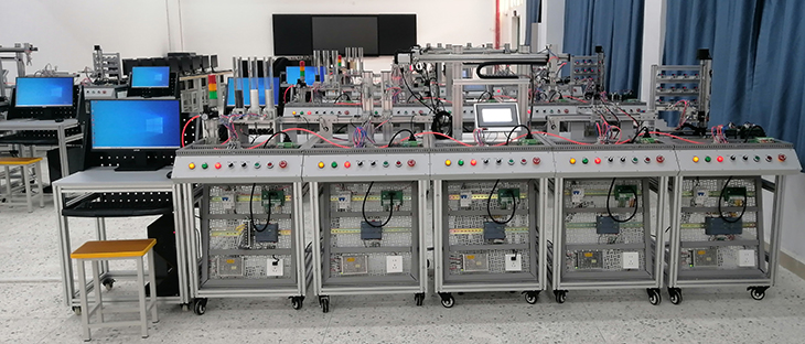 機電一體化技術實訓設備是指機械技術、電工電子技術、微電子技術、信息技術、傳感器技術、接口技術、信號變換技術等多種技術進行有機地結合,并綜合應用到實際中去的技能實訓綜合技術,現代化的自動生產設備幾乎可以說都是機電一體化的設備。自動化生產線實訓考核系統,可以培養和提高學生專業綜合能力,是一種重要的實訓設備。自動化生產線實訓系統、基于PLC技術的自動化生產線實訓考核系統,可以培養和提高學生專業綜合能力,是一種重要的實訓設備。自動化生產線實訓系統整體包括自動供料、檢測傳輸、檢測加工、自動裝配、自動分揀等工序,很好的將機械技術、微電子技術、電工電子技術、傳感測試技術、接口技術、信息變換技術、網.絡通信技術等多種技術有機地結合。該系統中自動分揀站的設計過程,包括系統硬件設計、PLC控制設計和程序設計方法。現代化的自動生產設備的最大特點是它的綜合性和系統性,在這里,機械技術、微電子技術、電工電子技術、傳感測試技術、接口技術、信息變換技術、網絡通信技術等多種技術有機地結合,并綜合應用到生產設備中:而系統性指的是,生產線的傳感檢測、傳輸與處理、控制、執行與驅動等機構在微處理單元的控制下協調有序地工作,有機地融合在一起。可編程序控制器(PLC)以其高抗干擾能力、高可靠性、高性能價格比且編程簡單而廣泛地應用在現代化的自動生產設備中,擔負著生產線的大腦一微 處理單元的角色。因此,培養掌握機電一體化技術,掌握PLC技術及PLC網絡技術的技術人材是當務之急。而一套基于PLC技術的自動化生產線實訓考核設備可以模擬一個與實際生產情況+分接近的控制過程,使學習者得到一個非常接近于實際的教學設備環境,從而縮短了理論教學與實際應用之間的距離。自動分揀站需完成對上一單元送來的已加工、裝配的工件進行分揀。使不同顏色的工件從不同的料槽分流的功能。當輸送站送來工件放到傳送帶上并為入料口光電傳感器檢測到時,即啟動變頻器,工件開始送入分揀區進行分揀。上海碩博弘揚大國工匠精神, 發展職業教育,應用教學設備,為企業培養高技能人才,而專業生產:光機電一體化(自動生產線)實訓裝置、灌裝自動化生產線實訓裝置、工業自動生產線實訓裝置 、工業控制模擬實訓裝置 、機電一體化組合實訓平臺 、機電一體化綜合實訓考核裝置、自動化生產安裝與調試實訓裝置 、光機電一體化高速分揀實訓系統 、典型機電設備安裝與控制實訓裝置、模塊式柔性自動環形生產線實驗系統(帶機器人工程型)、立體停車庫實物教學實驗裝置、機電一體化柔性生產線加工實訓系統(5站)、網絡型模塊式柔性自動化生產線實驗系統、模塊式柔性自動環形生產線實驗系統(工程型)、柔性生產制造實驗系統(工程型)、現代物流倉儲自動化實驗系統、運動實訓裝置、循環搬運自動控制實訓裝置、平面雙軸運行控制實訓裝置、工業機械手實訓裝置、物料分揀實訓裝置、機械手實訓裝置 、立體倉庫實訓裝置、十字路口交通燈實訓系統、機電液氣一體化綜合實訓裝置、光機電一體化高速分揀實訓系統、步進伺服控制綜合實訓平臺、光機電氣一體化控制實訓系統、 光機電一體化綜合實訓考核裝置、光機電一體化實訓考核裝置、光機電一體化實訓考核裝置、光機電氣一體化控制實訓系統、自動生產線拆裝與調試實訓裝置、柔性自動化生產線實訓系統。