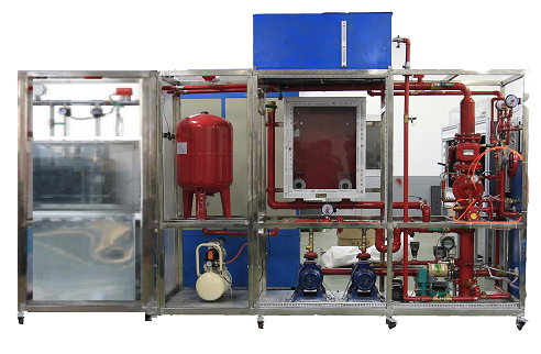 預作用雨淋滅火系統,預作用雨淋滅火實訓設備主要有系統設備有控制區,消防供水池、高位水泵保護區域等主要配備有預作用報警裝置、消防氣壓罐、消防火栓箱、消防栓、消防帶、消防水泵、閉式噴淋頭、高位水泵、備用泵、氣壓泵、感煙探測器、感溫探測器、自動充氣裝置、水流指示器、信號碟閥、壓力開關的狀態檢測,全透明護區域、具有火災模擬演示等組成。管路采用渡鋅管進行設計,渡鋅管的切割、套絲、安裝和通水試驗操作,通過控制系統實現預作用噴淋火實訓、通過控制系統可實現預作噴淋滅火功能、消防栓滅火功能。
