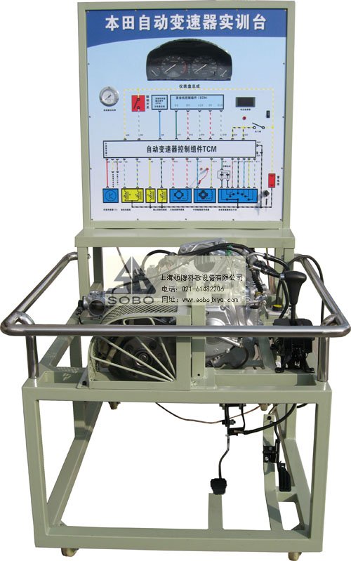 本自動(dòng)變速器實(shí)訓(xùn)臺(tái)是本公司采用日本本田公司自動(dòng)變速器為適應(yīng)汽車教學(xué)需求而研制的,該實(shí)訓(xùn)臺(tái)由電控變速器(八成新)、操作顯示面板及發(fā)動(dòng)機(jī)彩色電氣原理圖電腦控制柜、可移動(dòng)式臺(tái)架(萬(wàn)向腳輪)、驅(qū)動(dòng)系統(tǒng)(腳踏式油門(mén)踏板)變頻電機(jī)驅(qū)動(dòng)、剎車系統(tǒng)(腳踏液壓盤(pán)試剎車)、啟動(dòng)系統(tǒng)(電門(mén)鎖方式啟動(dòng))、車速傳感器、電磁閥執(zhí)行器、原車電腦、具有發(fā)動(dòng)機(jī)運(yùn)轉(zhuǎn)及顯示(轉(zhuǎn)速.車速.檔位)、液壓油壓力顯示表(顯示換檔過(guò)程油壓)、自動(dòng)變速器電磁閥工作指示LED燈、原車診斷座、進(jìn)行失速實(shí)驗(yàn)等、故障設(shè)置區(qū)可設(shè)置8路故障(老師設(shè)置任一路線路故障)、故障排除區(qū)(學(xué)生通過(guò)各種儀器、儀表、)在面板上用專用排故線連接排除故障、傳感器信號(hào)模擬等多項(xiàng)功能、具結(jié)構(gòu)緊湊、操作方便、安全可靠、教學(xué)直觀、是汽車自動(dòng)變速器實(shí)物教學(xué)不可缺少的實(shí)驗(yàn)室設(shè)備之一。