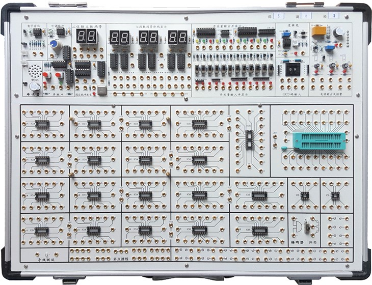 數字電路實驗箱,數字電路技術實驗箱,《數字電子技術》課程是電子信息工程、電子科學與技術等專業的基礎課程,《數字電子技術實驗》(即《電子實驗》的數字電路部分)是與《數字電子技術》課程相配套的實踐教學,也是鞏固學生數字電路理論知識所必需的一種教學途徑, 它對于促進學生加深理論知識的理解,掌握數字電路實驗技術,培訓數字電路的創新能力,具有必不可少的作用。