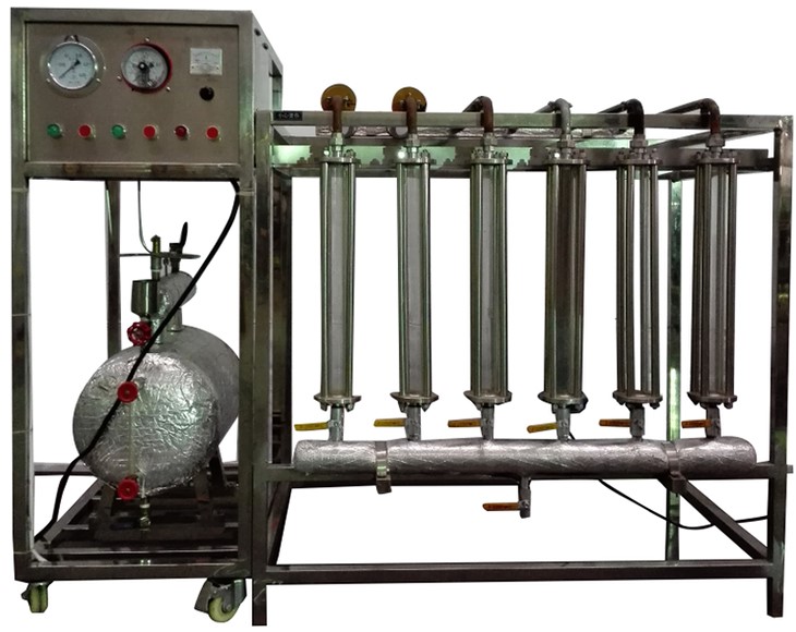 紫銅傳熱管道(銅裸管、涂黑管、翅片管、玻璃絲棉保溫管、鋸末保溫管、鍍鉻管各一組),調節閥門組,蒸汽發生器,熱風幕風機,壓力控制器及溫度保護裝置,不銹鋼臺架及控制屏等。