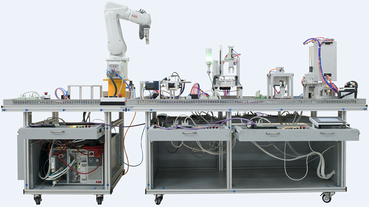 工業(yè)機器人循環(huán)生產(chǎn)線實訓(xùn)裝備,工業(yè)機器人智能生產(chǎn)線實訓(xùn)系統(tǒng)以工業(yè)化現(xiàn)場真應(yīng)用作為教學(xué)藍本,采用多種型式、多種規(guī)格、多種應(yīng)用組合成型的工業(yè)應(yīng)用生產(chǎn)線。主要以體現(xiàn)工業(yè)機器人典型應(yīng)用,讓學(xué)生撐握真實工業(yè)機器人現(xiàn)場應(yīng)用方法。通過以工業(yè)現(xiàn)場真實應(yīng)用案例實訓(xùn),縮短教學(xué)實訓(xùn)與工廠崗位應(yīng)用的差距。