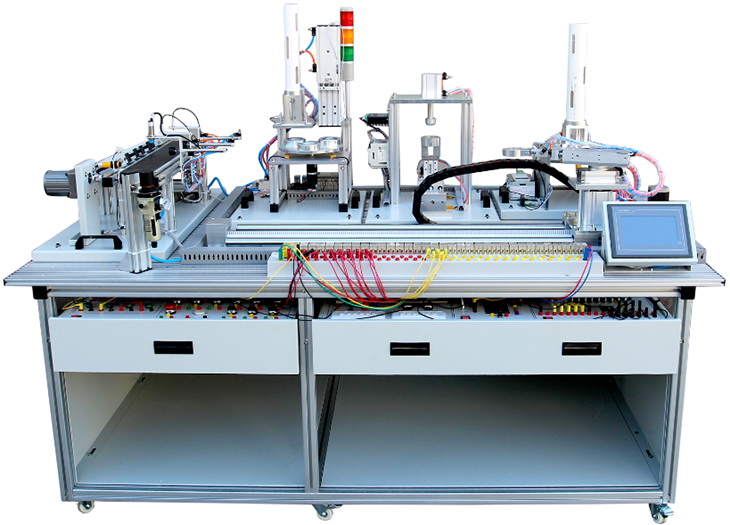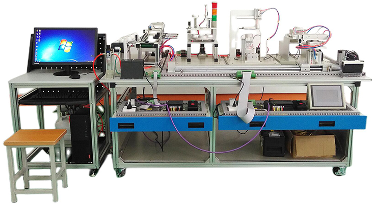 一體化自動(dòng)生產(chǎn)線系統(tǒng)實(shí)訓(xùn)裝置綜合應(yīng)用了多種技術(shù)知識(shí),有氣動(dòng)控制技術(shù)、機(jī)械技術(shù)、傳感器技術(shù)、PLC控制技術(shù)、步進(jìn)電動(dòng)機(jī)位置控制和變頻技術(shù)等,模擬一個(gè)與實(shí)際生產(chǎn)情況十分接近的控制過程,可以提高學(xué)生的綜合技能。