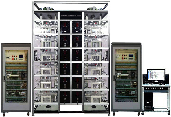 電梯控制技術綜合實訓裝置是專門為職業院校開設的電氣自動化、機電一體化、機械制造與自動化等相關專業而研制的,裝置根據智能建筑中升降電梯的機構按照一定的比例縮小設計,所用設備、器件與實際電梯基本一致,采用槽鋼方管框架結構整體設計,正面使用透明有機玻璃面板,融低壓電氣、PLC、變頻調速、智能人機、傳感檢測、視頻監控、智能考核系統等于一體,實現智能電梯復雜的開關量控制、時序邏輯控制。通過該裝置的操作訓練可考核學生掌握智能電梯的裝調與維護綜合能力,如電梯呼梯盒的安裝、井道信息系統的安裝、平層開關檢測位置調整、門機機構調整、電氣控制柜的器件安裝、接線、變頻器參數設置、PLC編程與調試、電梯群控功能調試、電梯故障排除、運行維護等,除了滿足專業實訓教學,還能開展技能考核以及職業技能競賽。