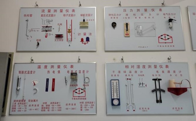 多種熱電偶等實物或模型組成,并在每類儀表下面畫有材質和使用適用溫度范圍的表格和工作原理圖