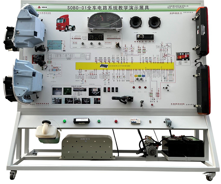全車電路板試教板教學設備采用 全新豪沃1167 柴油機整車電器實物為基礎,充分展示汽車儀表系統(tǒng)、燈光系統(tǒng)、雨刮系統(tǒng)、喇叭系統(tǒng)、發(fā)動機電器系統(tǒng)、起動系統(tǒng)和充電系統(tǒng)等汽車電器各系統(tǒng)的組成結構和工作過程。