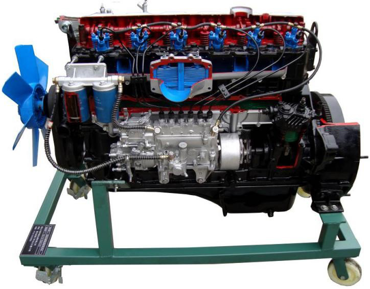 陜汽2220發動機解剖運行實訓設備采用翻新濰柴WP13. 605E30發動機總成進行剖面處理,各部件齊全,剖面位置合理,能全面展示發動機內外部結構和部件的運動情況,適用于發動機原理和機械機構的教學。
