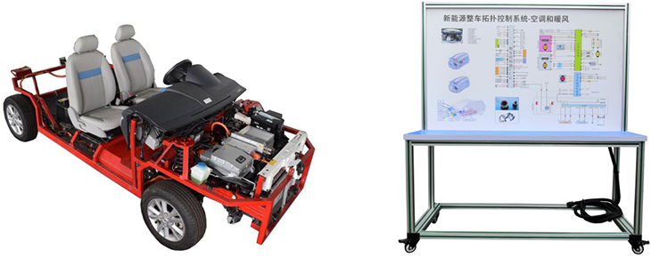 經拆卸車身的純電動整車底盤總成等;配置教學資料與維修資料、配原理教學面板六套(包括:驅動傳動系統、動力電池和管理系統、電動轉向助力、空調和暖風系統、電子真空制動系統、車身電氣系統的教學功能)、故障模擬與排除裝置、設備操作說明書。