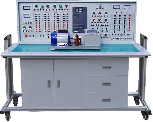 變頻器實訓裝置由控制屏、實訓桌、變頻實訓組件、繼電接觸實訓組件、數字量/模擬量輸入輸出給定指示組件、三相異步電機、電機導軌、測速機構等組成。