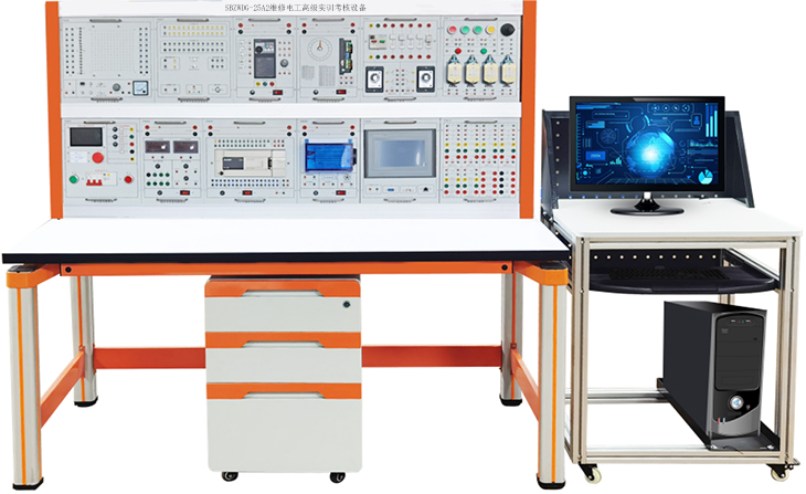 電氣安裝與維修實(shí)訓(xùn)考核裝置是根據(jù)工廠電氣安裝和室內(nèi)電氣安裝等維修 電工和電氣安裝工實(shí)訓(xùn)鑒定要求開發(fā)的一種通用實(shí)訓(xùn)平臺(tái)。 適合于各類職業(yè)院校 和技工學(xué)校維修電工、 電氣安裝工、水電工等有電氣實(shí)訓(xùn)要求的相關(guān)專業(yè)的作為 公共實(shí)訓(xùn)平臺(tái)使用。 采用鋼制網(wǎng)孔板和鋼制專用型材組接而成,安裝有自鎖式腳輪,方便移動(dòng)和使用。裝 置表面噴塑,色彩穩(wěn)重氣派。電氣安裝與維修實(shí)訓(xùn)裝置設(shè)計(jì)高度以人站在一級(jí)人字梯即可方便操作的高度,既安 全又能使使用者感受到施工現(xiàn)場環(huán)境。 橫向、 叢向?qū)挾群线m, 可以模擬現(xiàn)場線路的轉(zhuǎn)向布置。